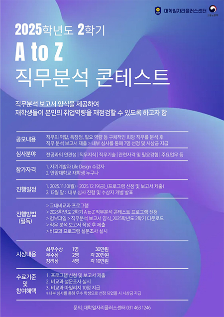 - 안양대학교 대학일자리플러스센터, ‘A to Z 직무 분석콘테스트’ 개최