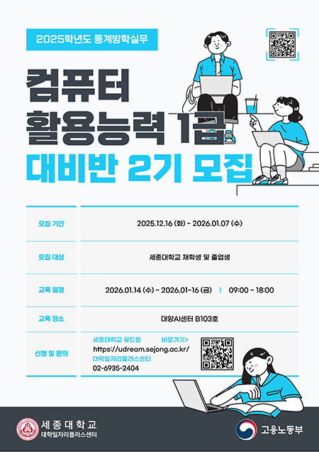 세종대 대학일자리플러스센터, 2025년 동계방학 컴퓨터활용능력 1급 대비반 2기 운영