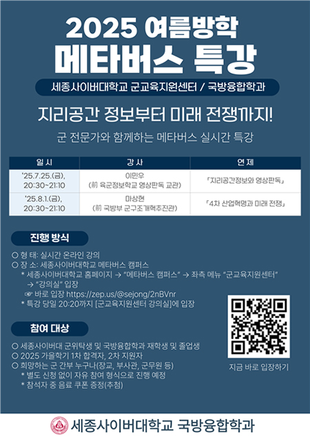 세종사이버대학교, 여름방학 ‘메타버스 안보 특강’ 개최