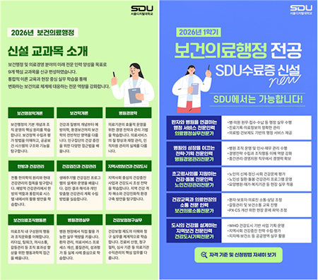사이버대학 서울디지털대 보건의료행정전공, 2026학년도 1학기 신규 교과목 신설...‘보건행정·의료경영’ 미래 핵심 전문 인력 양성