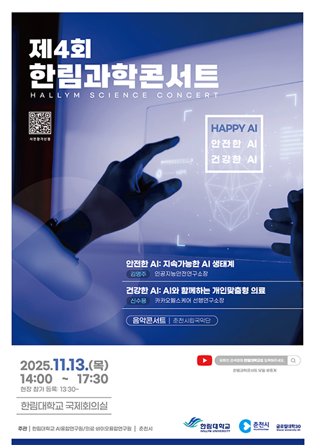 한림대학교, 춘천시와 '제4회 한림과학콘서트' 공동 개최… HAPPY AI:안전한 AI, 건강한 AI