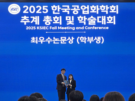 - 서울시립대 융합응용화학과 전채연 학부생, 한국공업화학회 추계 학술대회 최우수논문상 수상